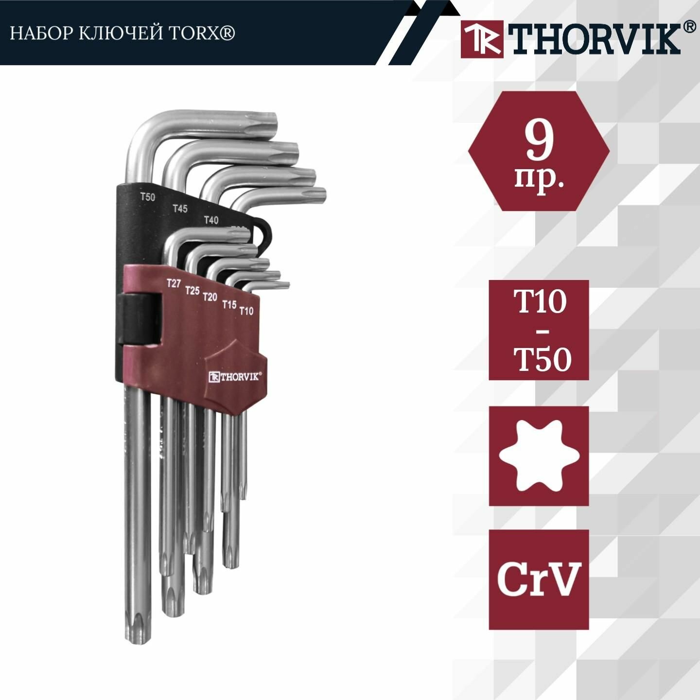 THORVIK TK9S Набор кючей торцевых TORX®, Т10-T50, 9 прметов
