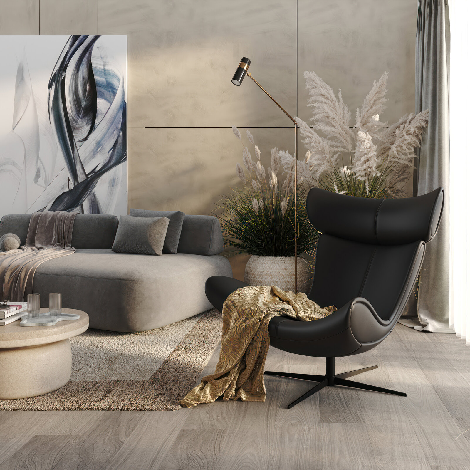 Кресло мягкое SWAN темно-серый, для отдыха, взрослое, крутящееся, круглое на ножке, офисное для руководителя, интерьерное для дома в гостиную
