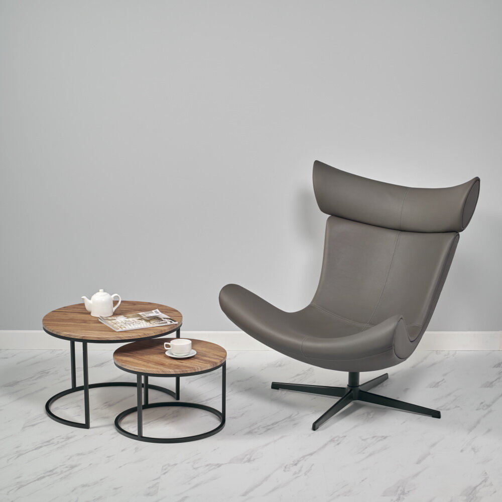 Кресло кожаное мягкое TORO серое, для отдыха, взрослое крутящееся круглое на ножке, офисное для руководителя, для дома в гостиную, прессованная кожа