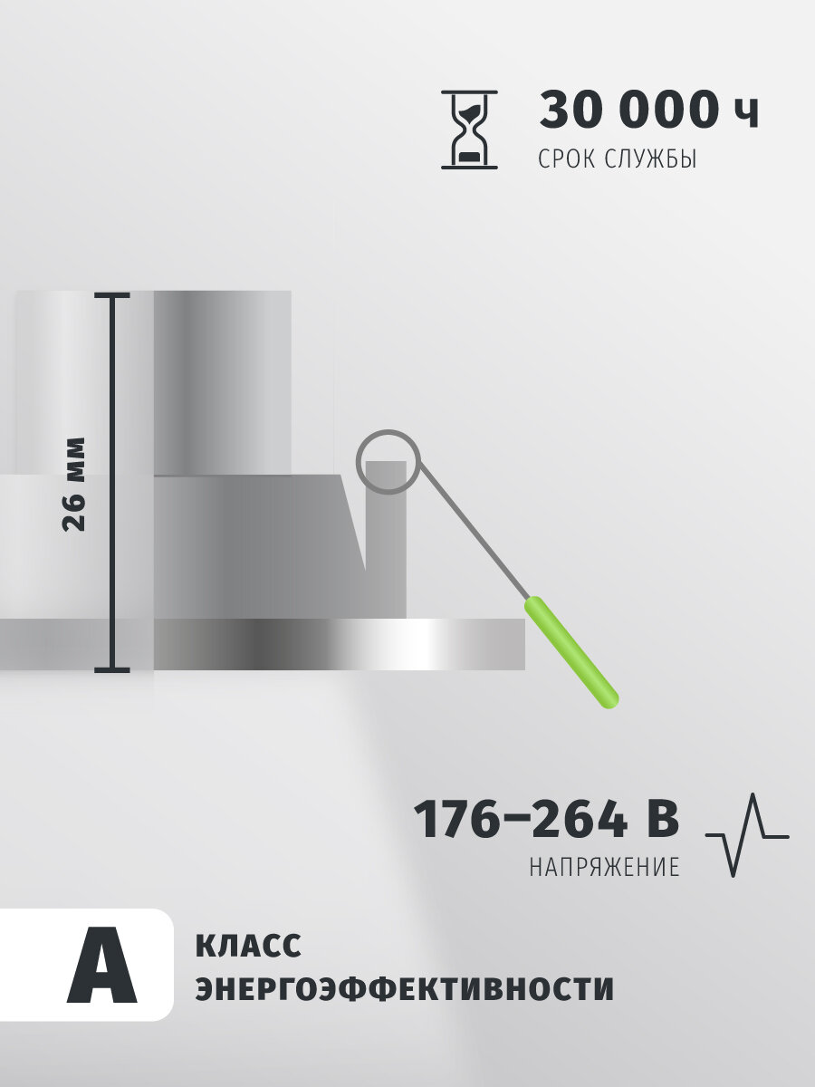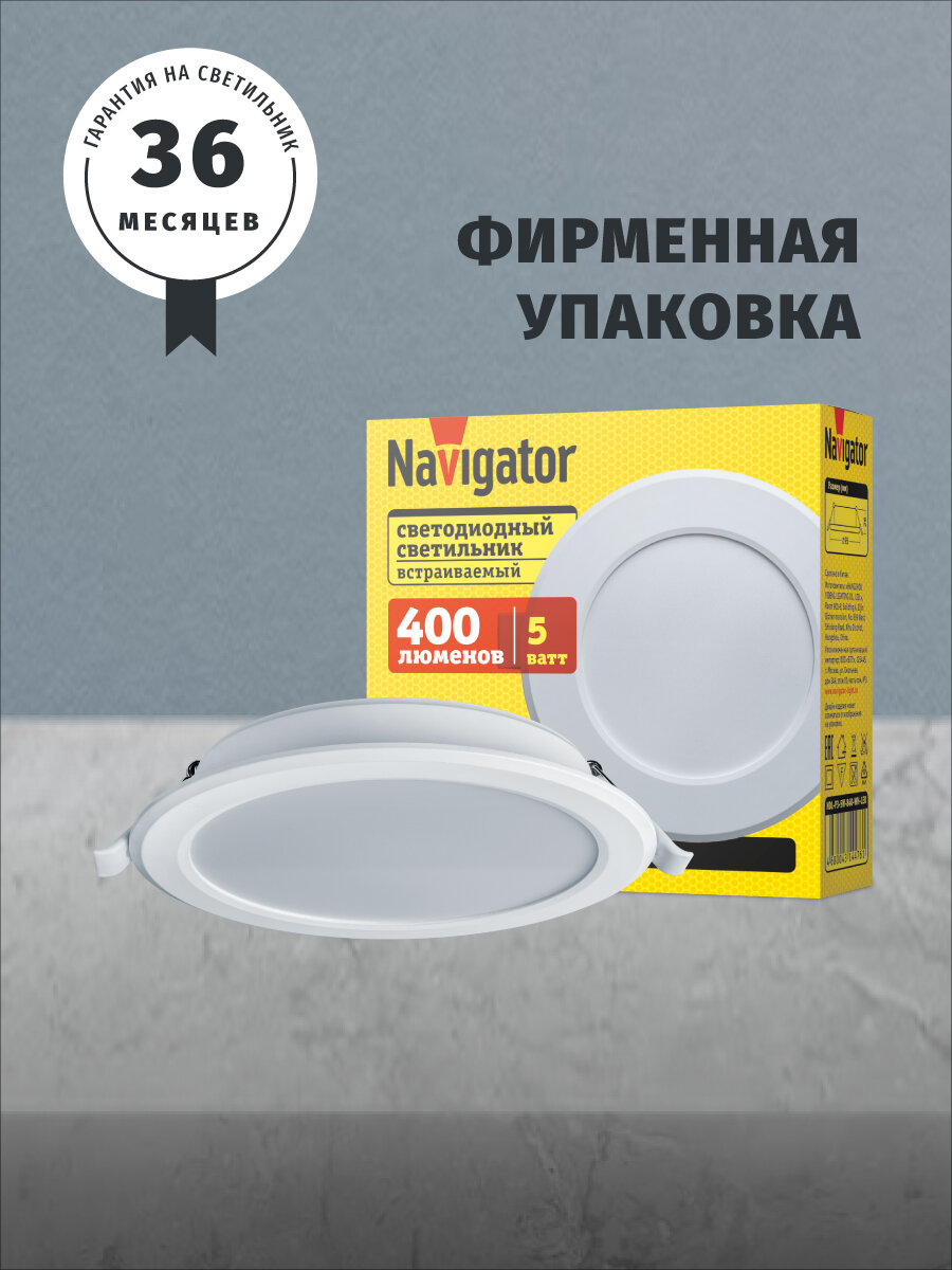 Встраиваемый светодиодный светильник Navigator 14 476 NDL-P3-5W-840-WH-LED (d70), цена за 1 шт.