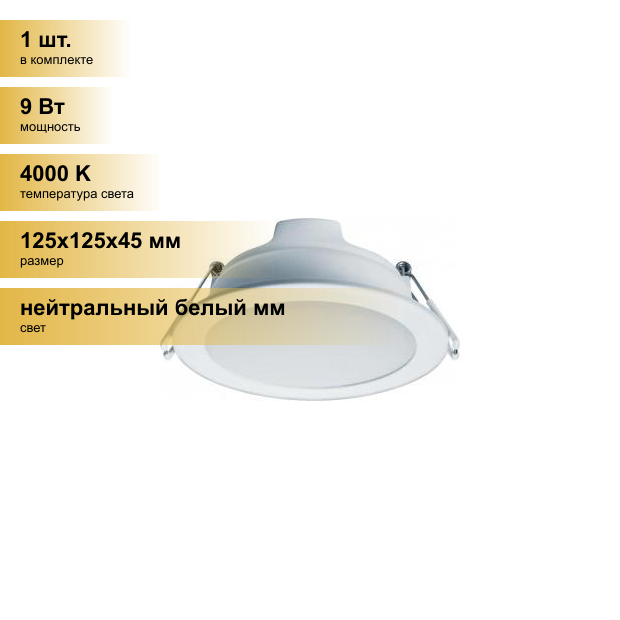 Светильник светодиодный встраиваемый Navigator 14 478, 9 Вт, дневного света 4000К
