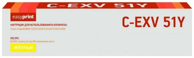 Картридж лазерный Easyprint LC-EXV51Y (C-EXV51Y/0484C002) для принтеров Canon imageRUNNER ADVANCE C5535/C5535i/C5540i/C5550i/C5560i, желтый