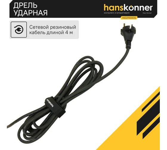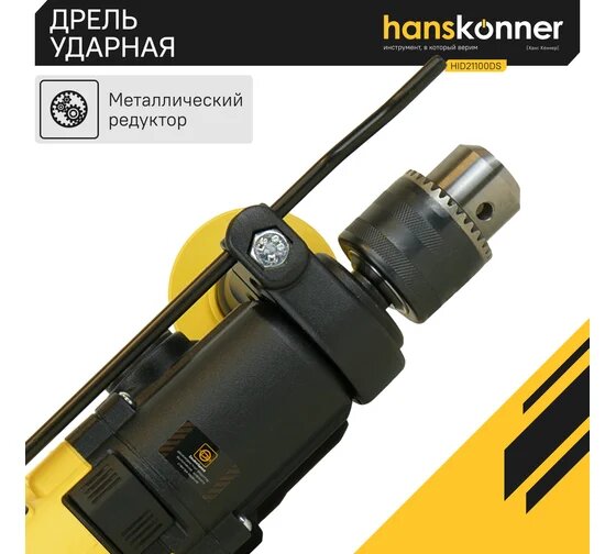 Дрель ударная Hanskonner (HID21100DS), 1000 Вт, ДВЕ скорости, 0-1100/3000 оборотов, кабель 4 м интересное: