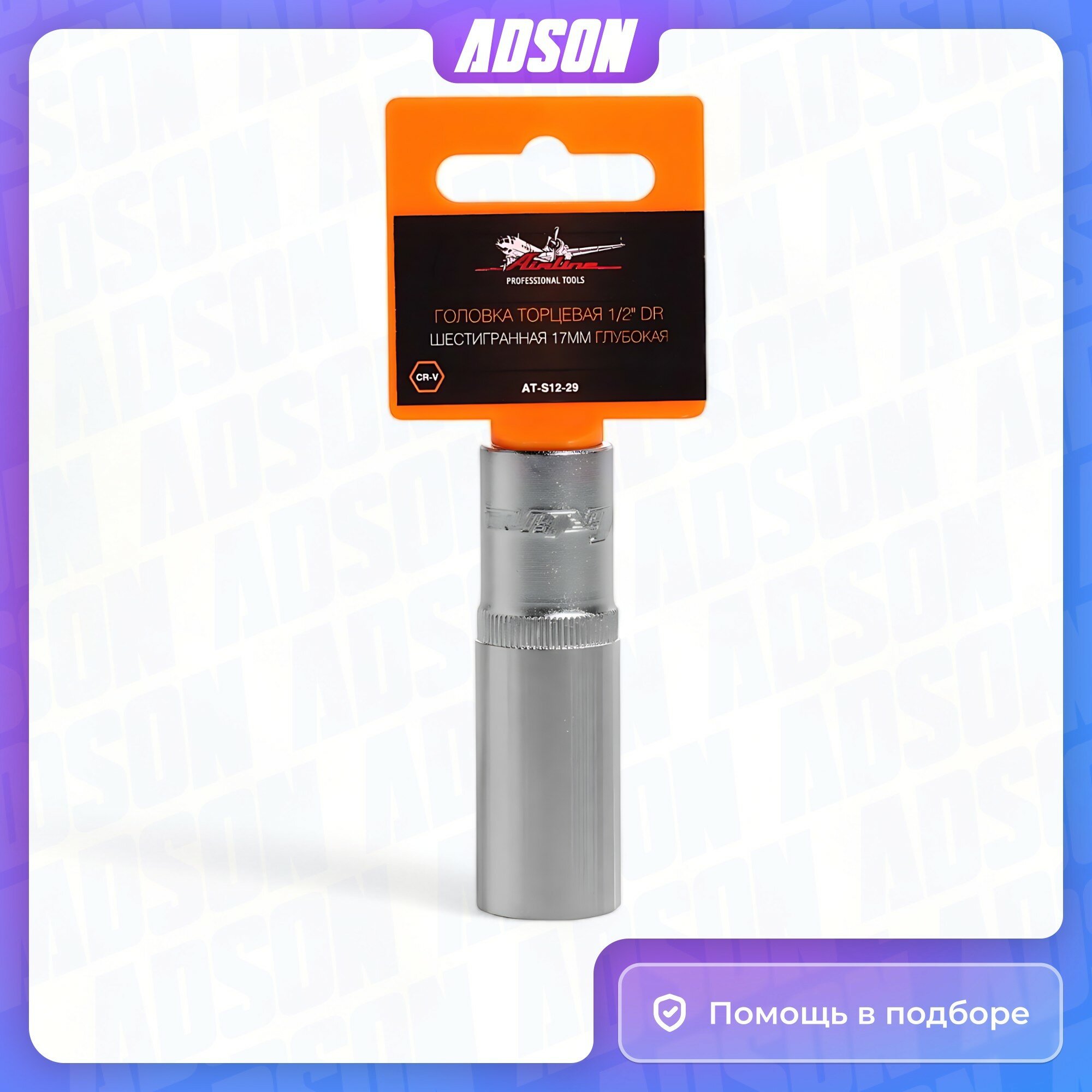 Головка торцевая 1/2" DR шестигранная 17мм глубокая в пакете (AT-S12-29)