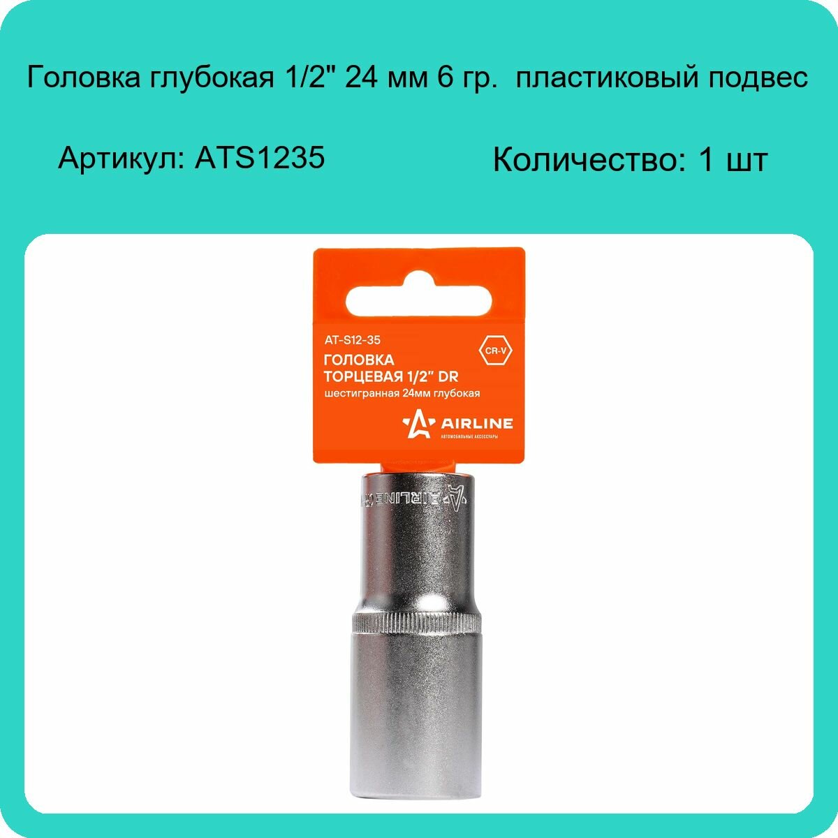 Головка Торцевая 1/2" Dr Шестигранная 24Мм Глубокая Пласт. Подвес (At-S12-35) AIRLINE арт. AT-S12-35