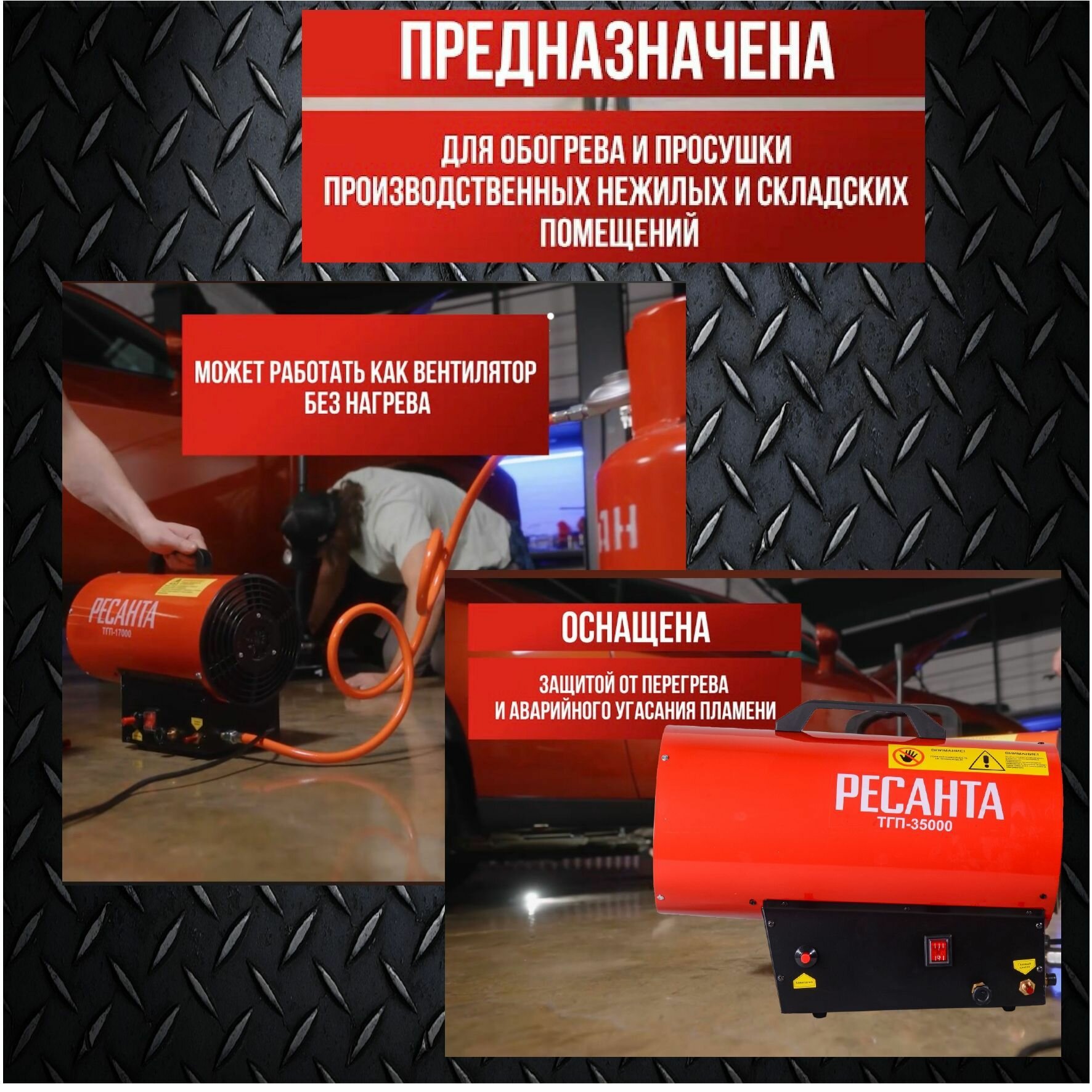 СохранитьГазовая тепловая пушка РЕСАНТА ТГП-35000 интересное: