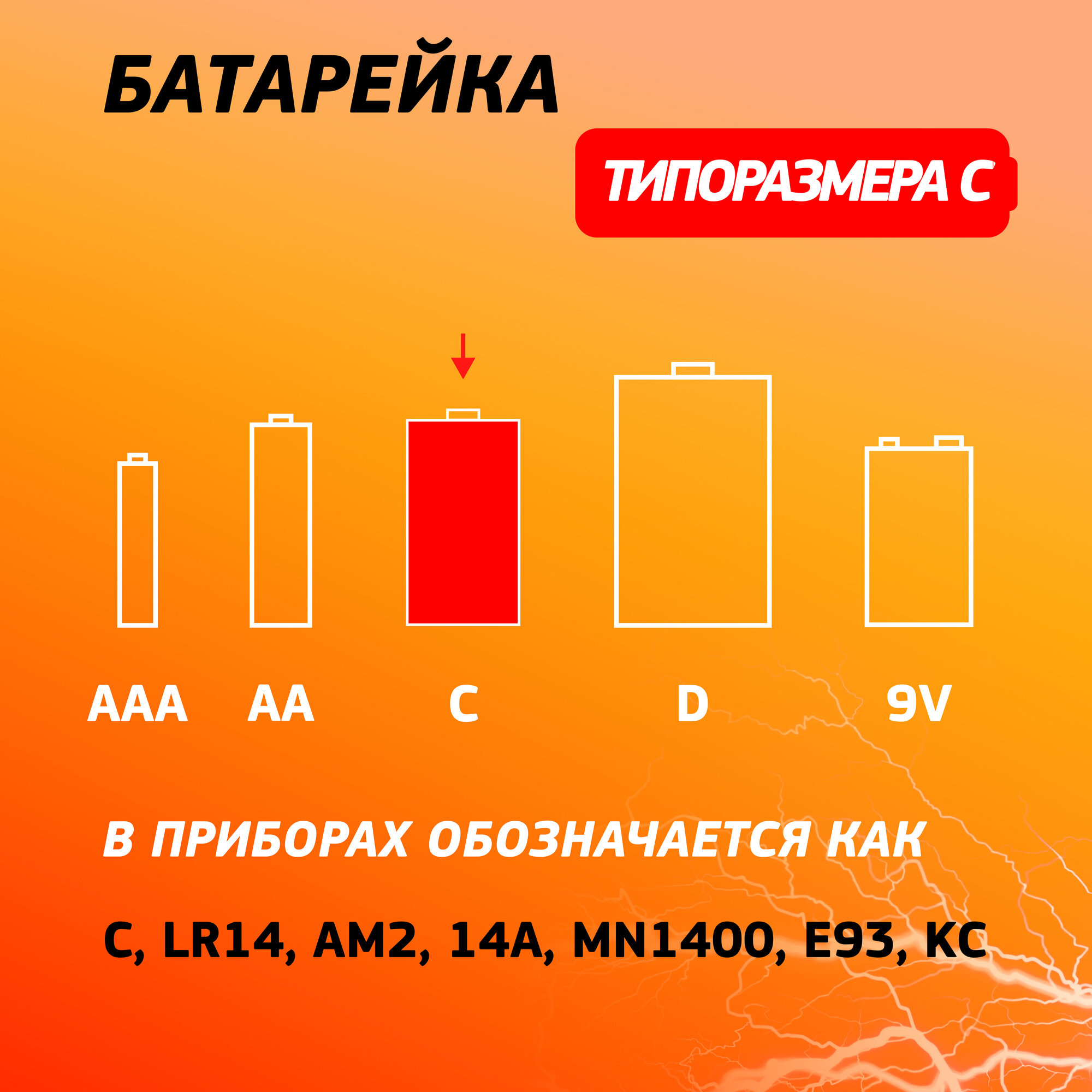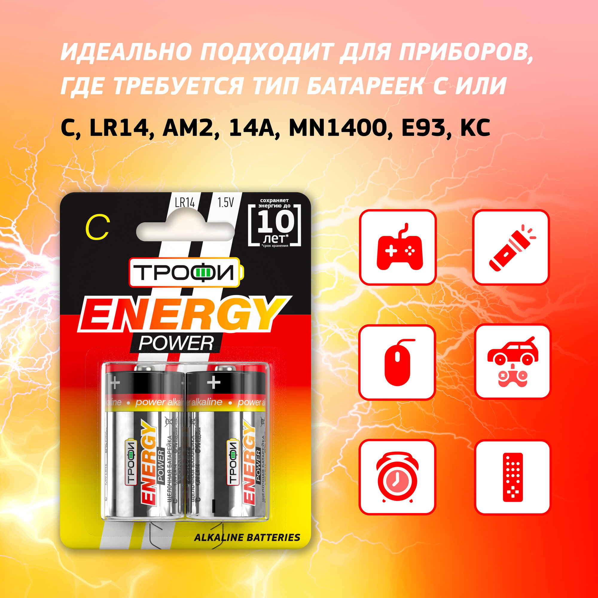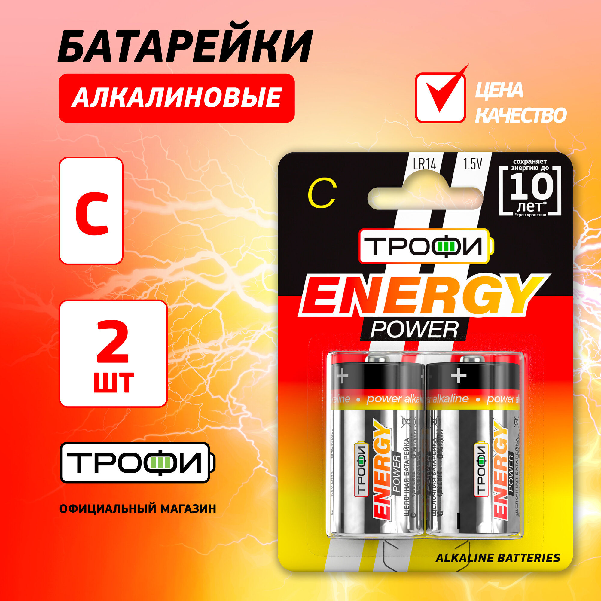 Батарейки LR14 тип C щелочные алкалиновые Трофи LR14-2BL ENERGY POWER Alkaline для сигнализации, радио рации, фонаря, игрушек / Элементы питания 1.5 В 6700 мАч 2 штуки интересное: