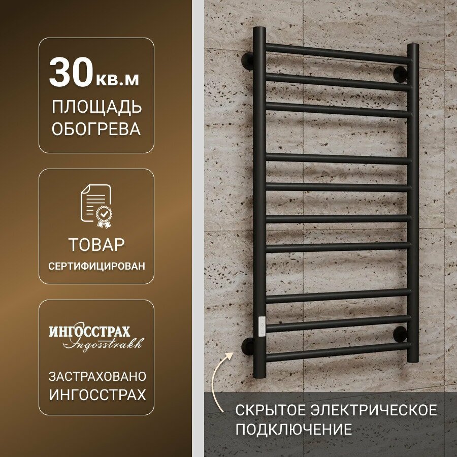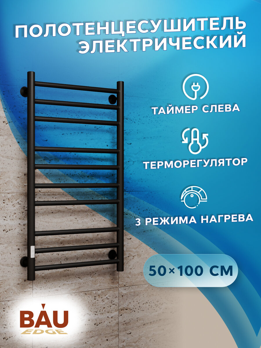 СохранитьПолотенцесушитель электрический BAU В10 100х50, П10 (3+4+3) таймер слева, черный матовый RAL 9005 интересное: