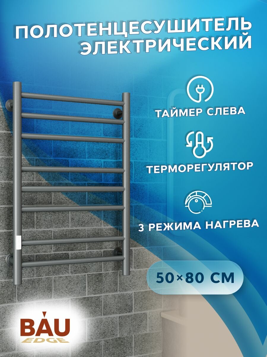 Купить Полотенцесушитель электрический BAU В10 Gun Grey 50х80, П8 темно-серый металлик с таймером с таймером слева