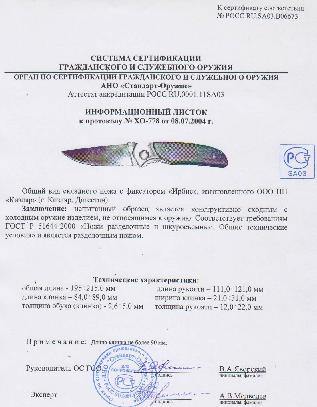 Нож ПП кизляр складной "Ирбис" 011100 (полир.; дерев.; без гард.) интересное: