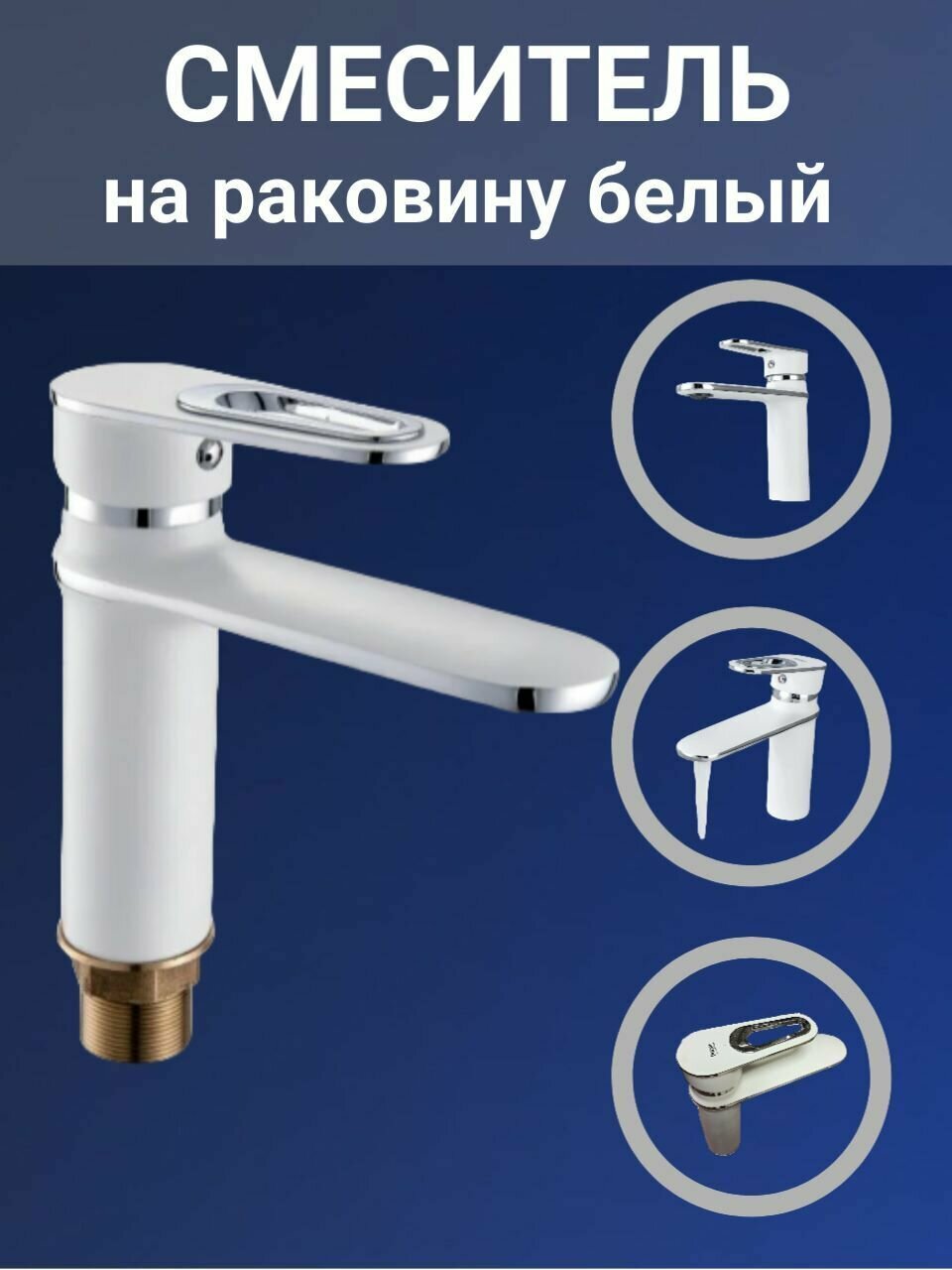 Смеситель на раковину Potato P10274-7 с монолитным изливом, картридж 35 мм, белый, крепление гайка