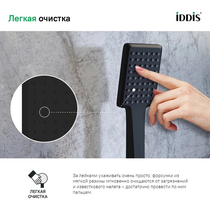 Купить Лейка для душа IDDIS Slide SLI1F0Bi18 черная матовая 1 режим прямоугольная