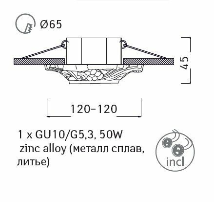 | Ширина/диаметр врезного отверстия | 65 мм |