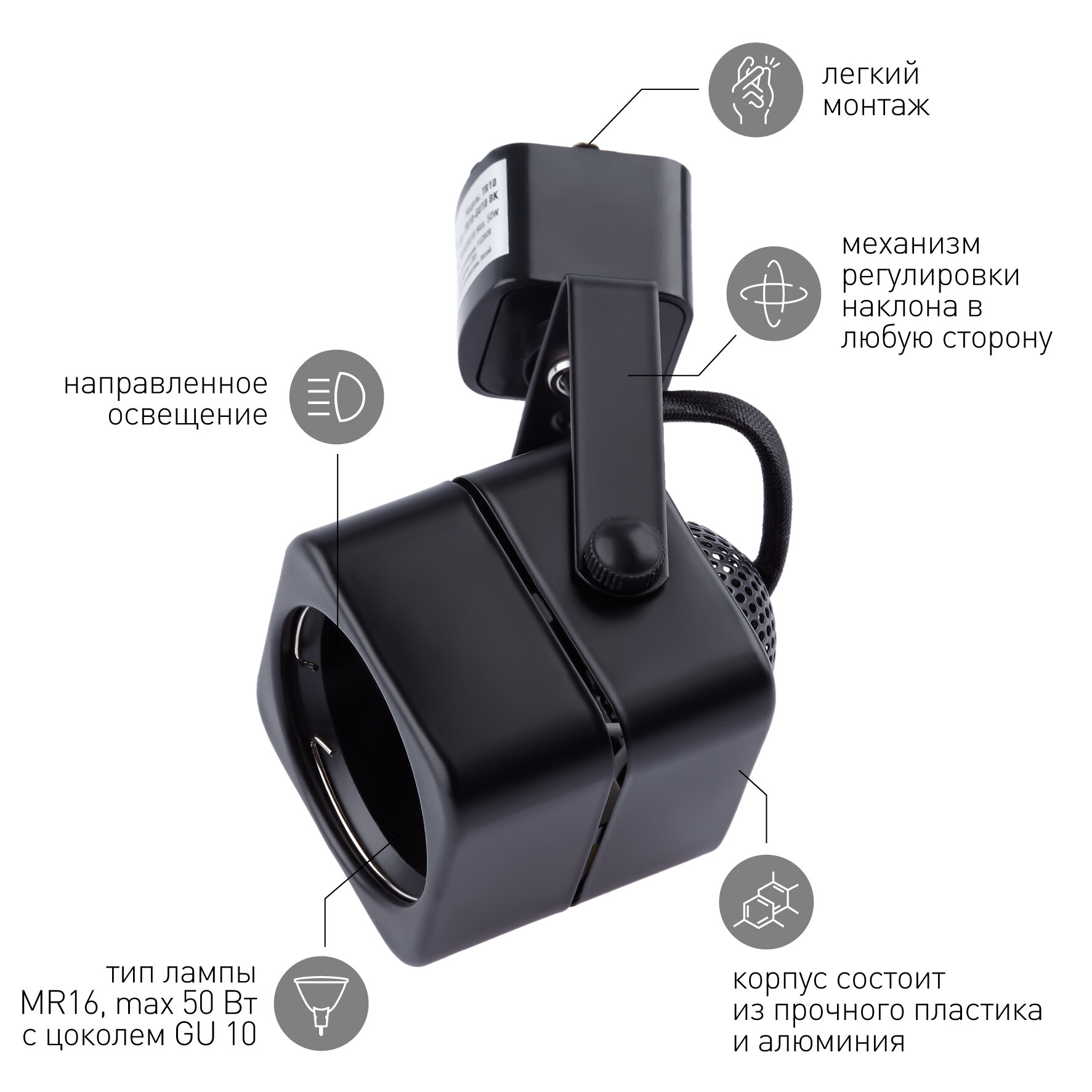 Купить Светильник трековый под лампу GU10 черный TR10-GU10 BK ЭРА