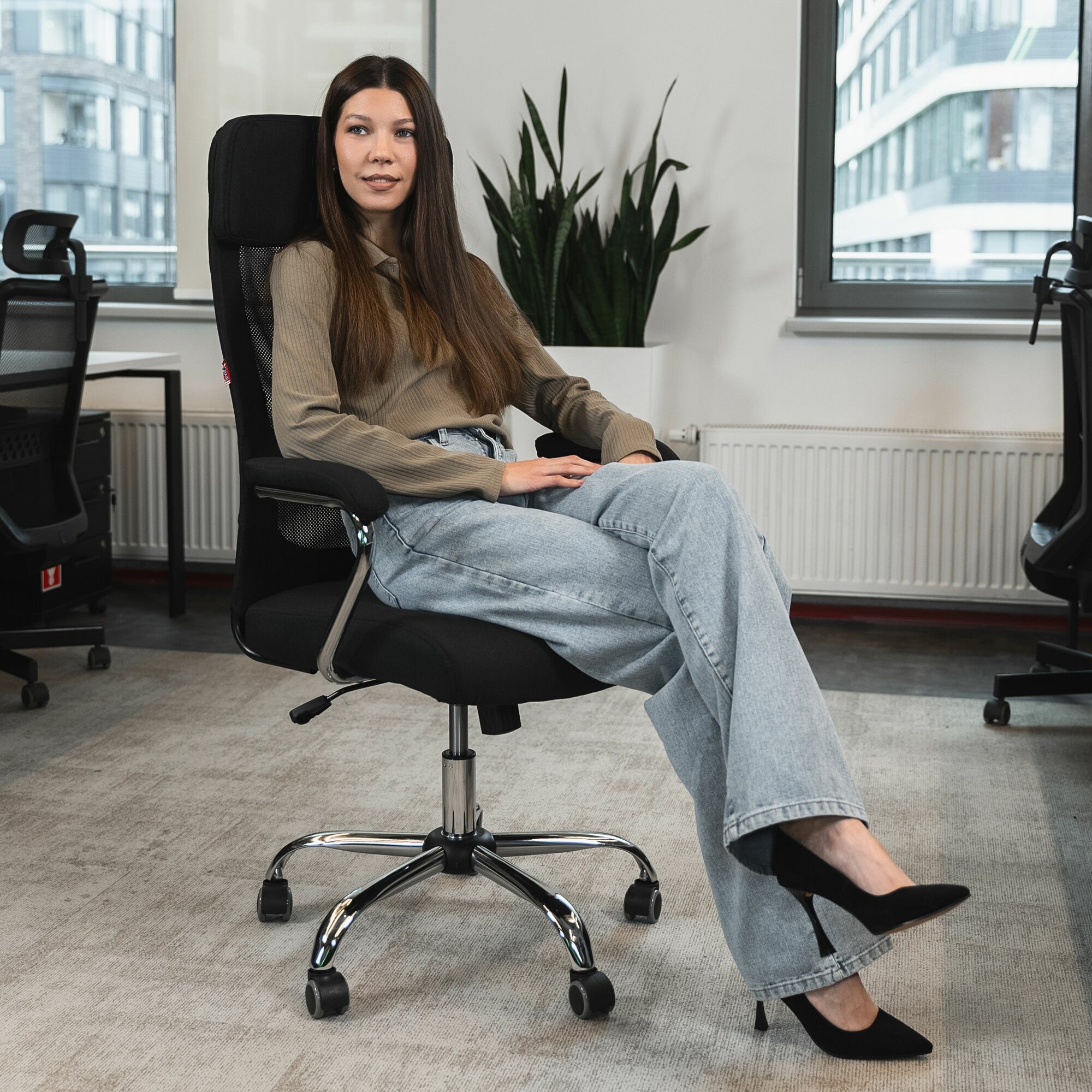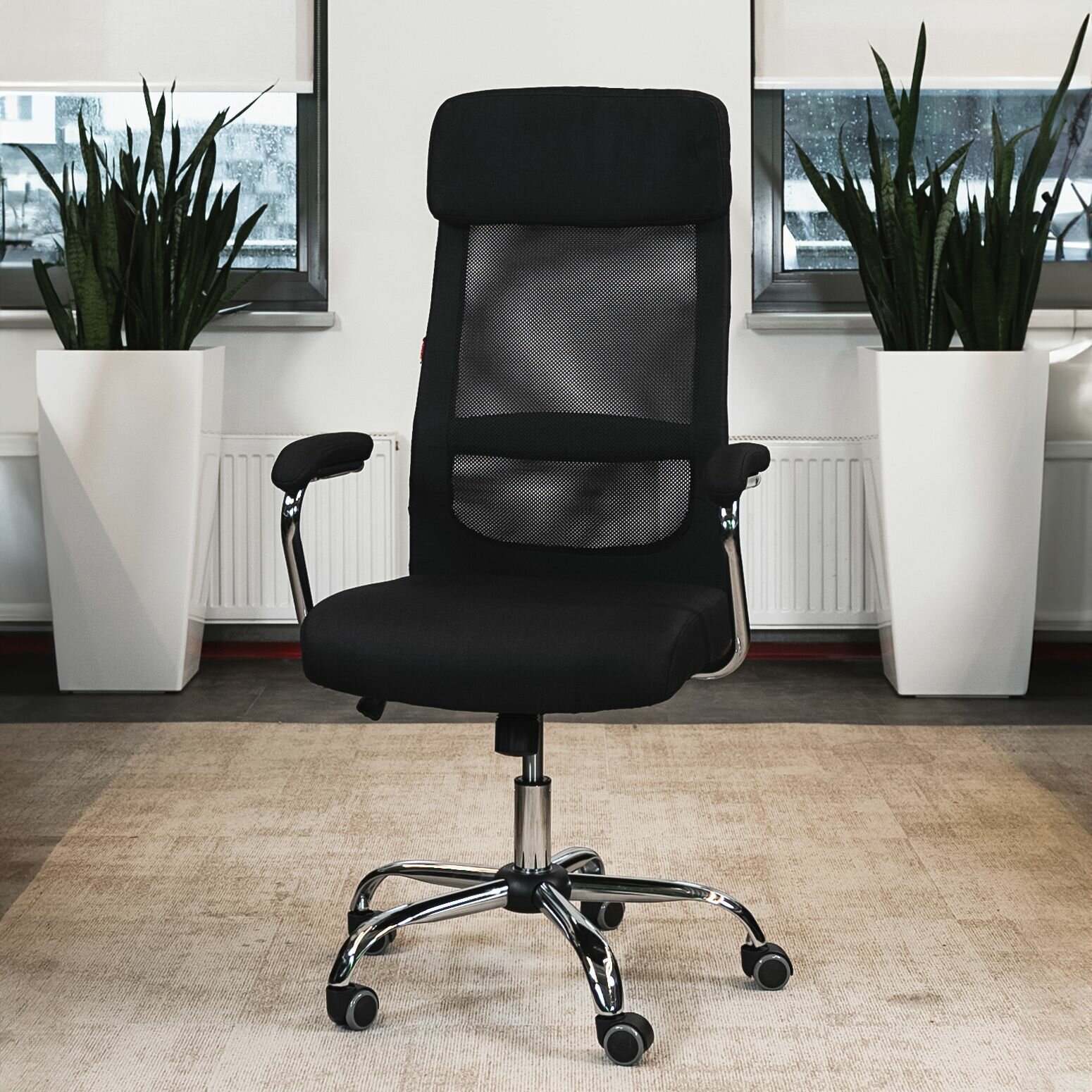 Кресло компьютерное Easy Chair для руководителя, черное, с подлокотниками, ткань, сетка, крестовина из металла
