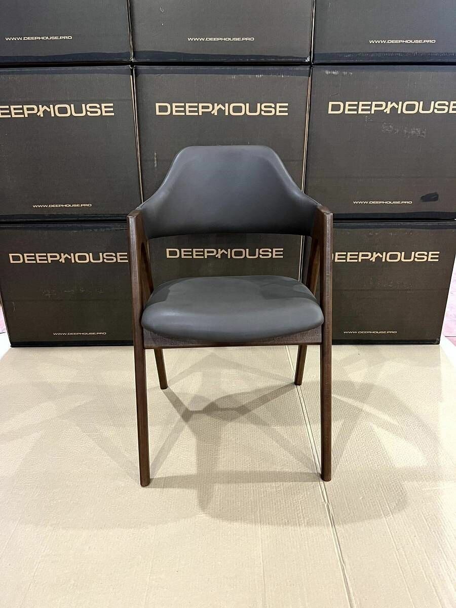 Стул для кухни DeepHouse Белфаст серо-коричневая экокожа, массив бука (натуральное дерево) для дома/для гостиной/для столовой/для кафе /кухонный стул/стул кухонный