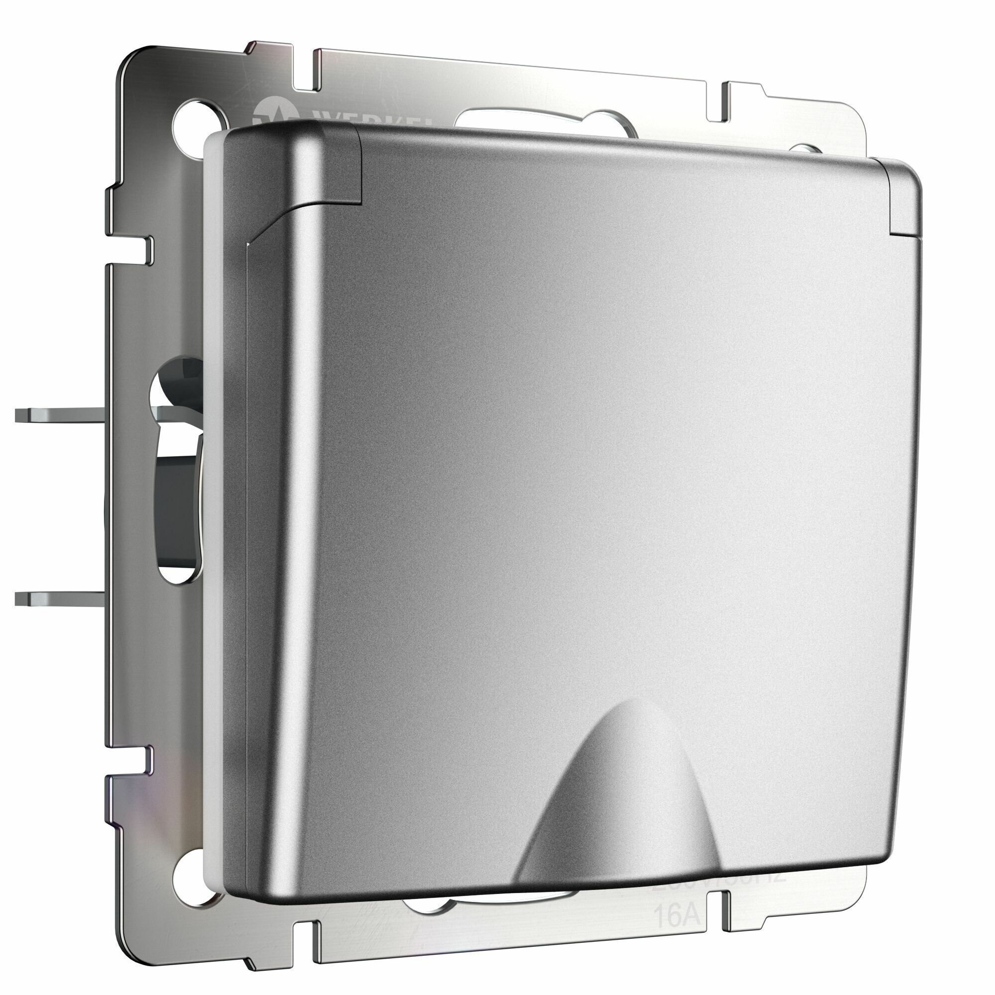 Розетка встраиваемая Werkel W1171265 с заземлением с крышкой и шторкой влагозащищенная цвет серебряный матовый