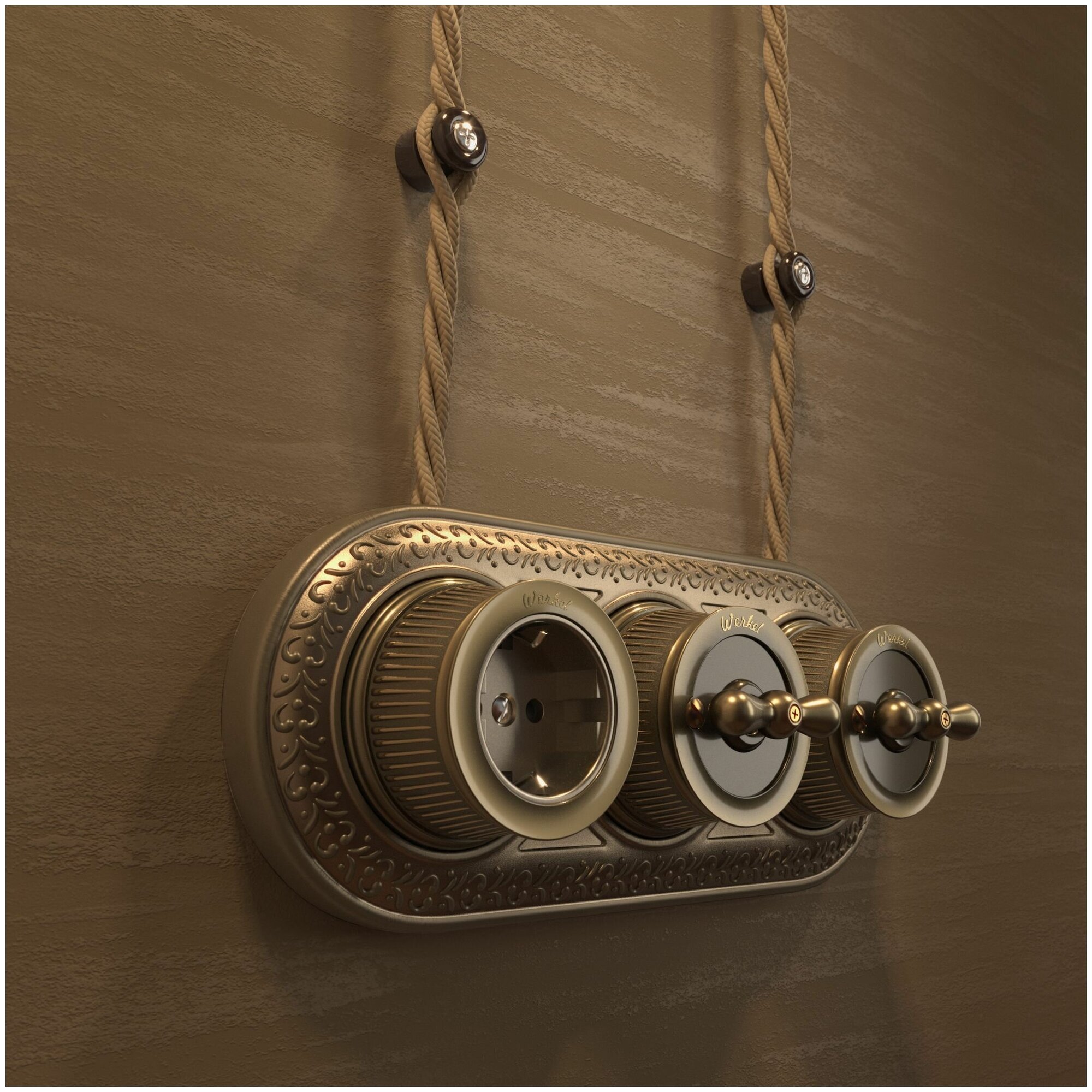 Розетка с заземлением Werkel Ретро W5771012, цвет бронзовый, IP20