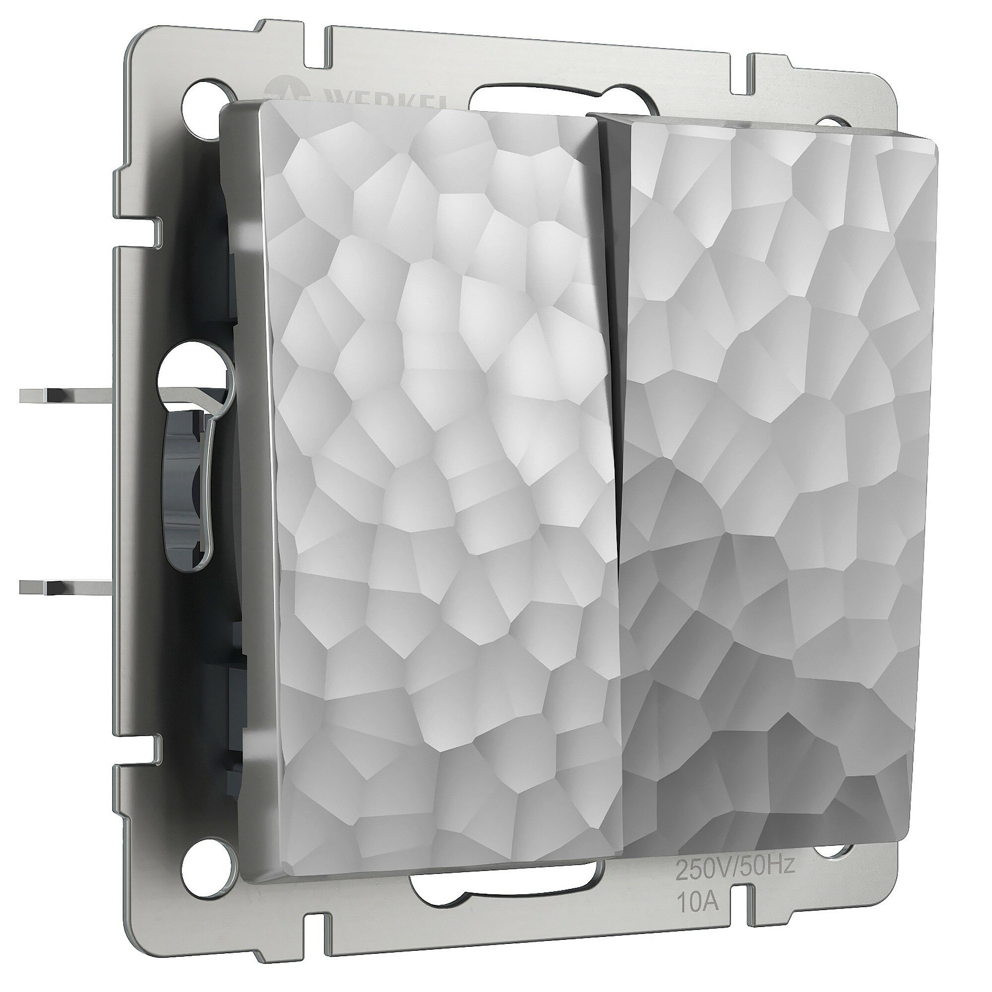 Встраиваемый двухклавишный выключатель Werkel Hammer W1120065 серебряный матовый 10 А