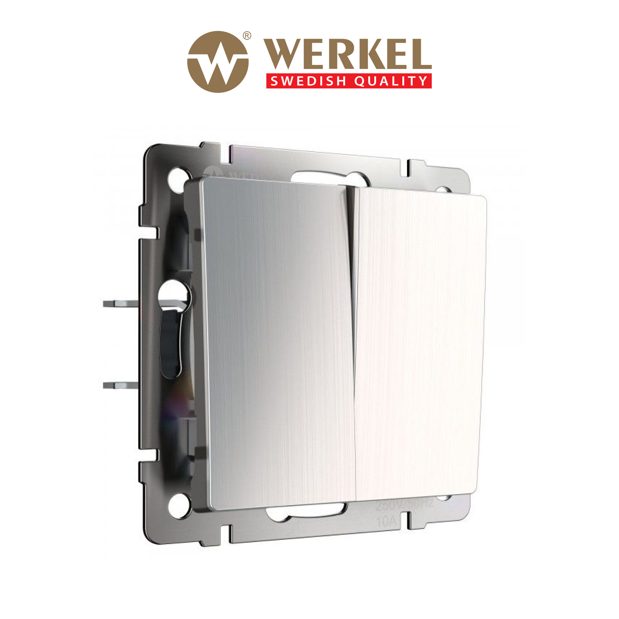 Встраиваемый двухклавишный выключатель Werkel Hammer W1120065 серебряный матовый 10 А