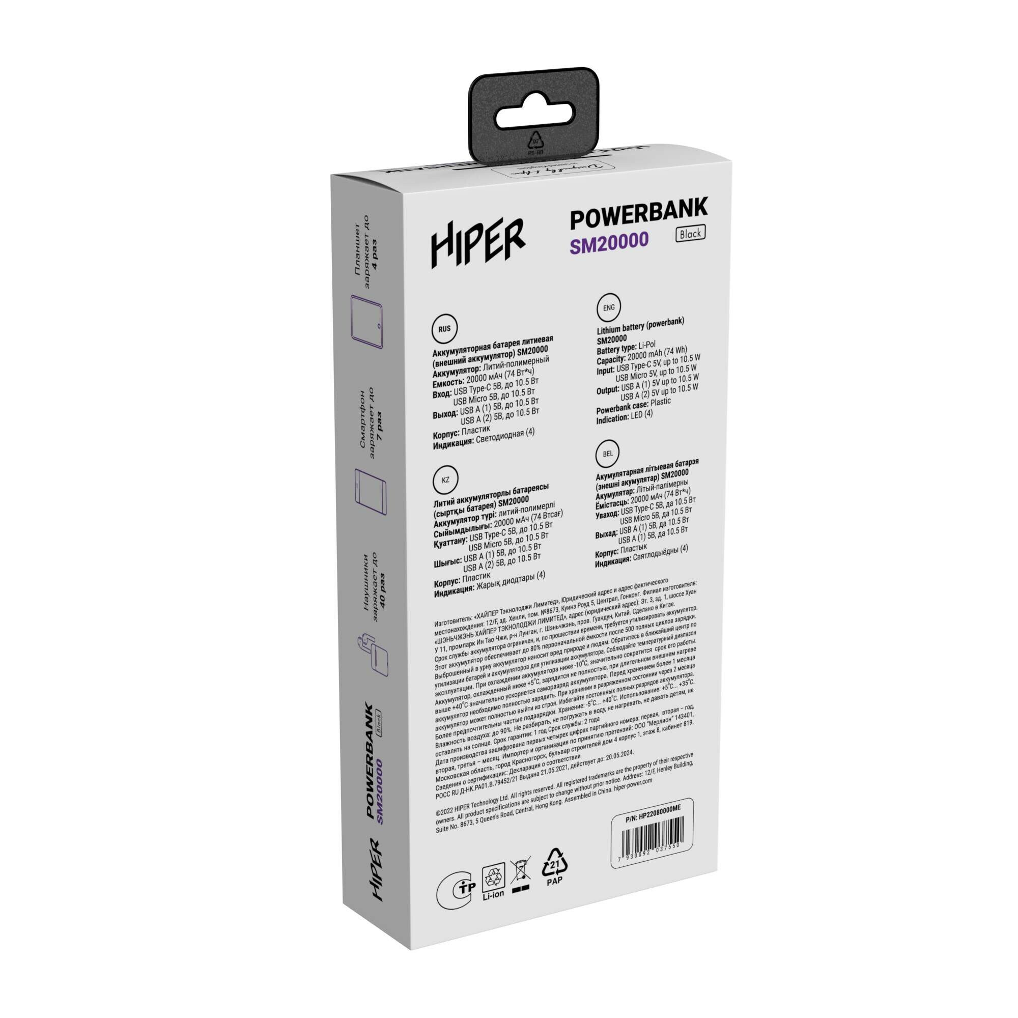 Внешний аккумулятор HIPER SM20000 20000mAh, черный