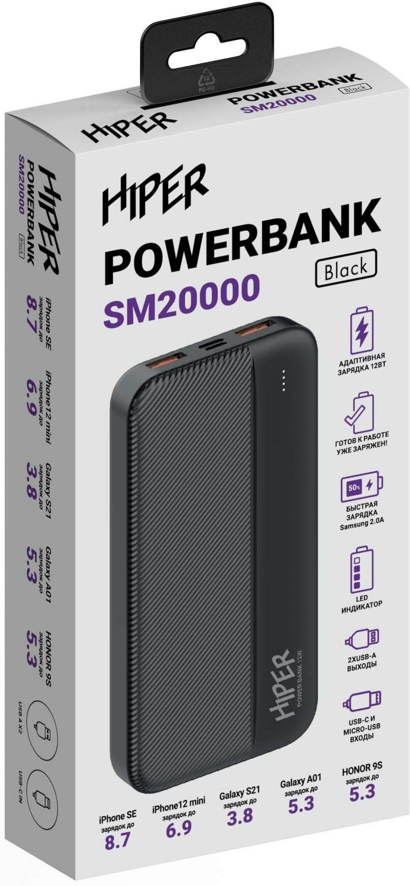 Купить Портативный аккумулятор (Powerbank) HIPER SM20000 (SM20000 BLACK)
