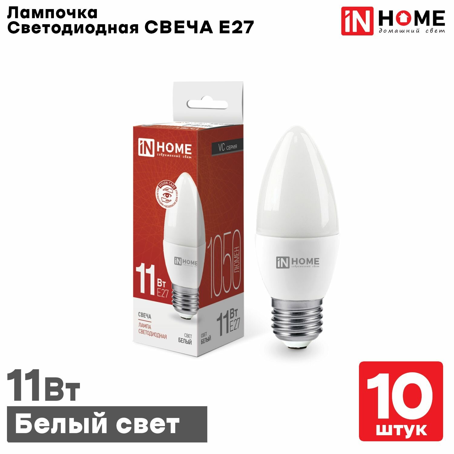 Лампа светодиодная LED-СВЕЧА-VC 11Вт 230В Е27 3000К 1050Лм IN HOME(10 шт в упаковке)