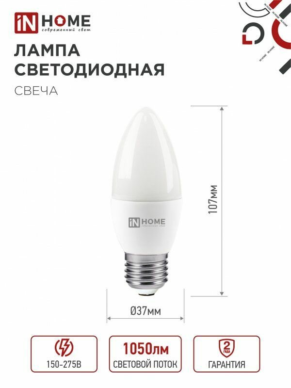 (25 шт.) Светодиодная лампочка IN HOME С37 11Вт 230В 4000К Е27