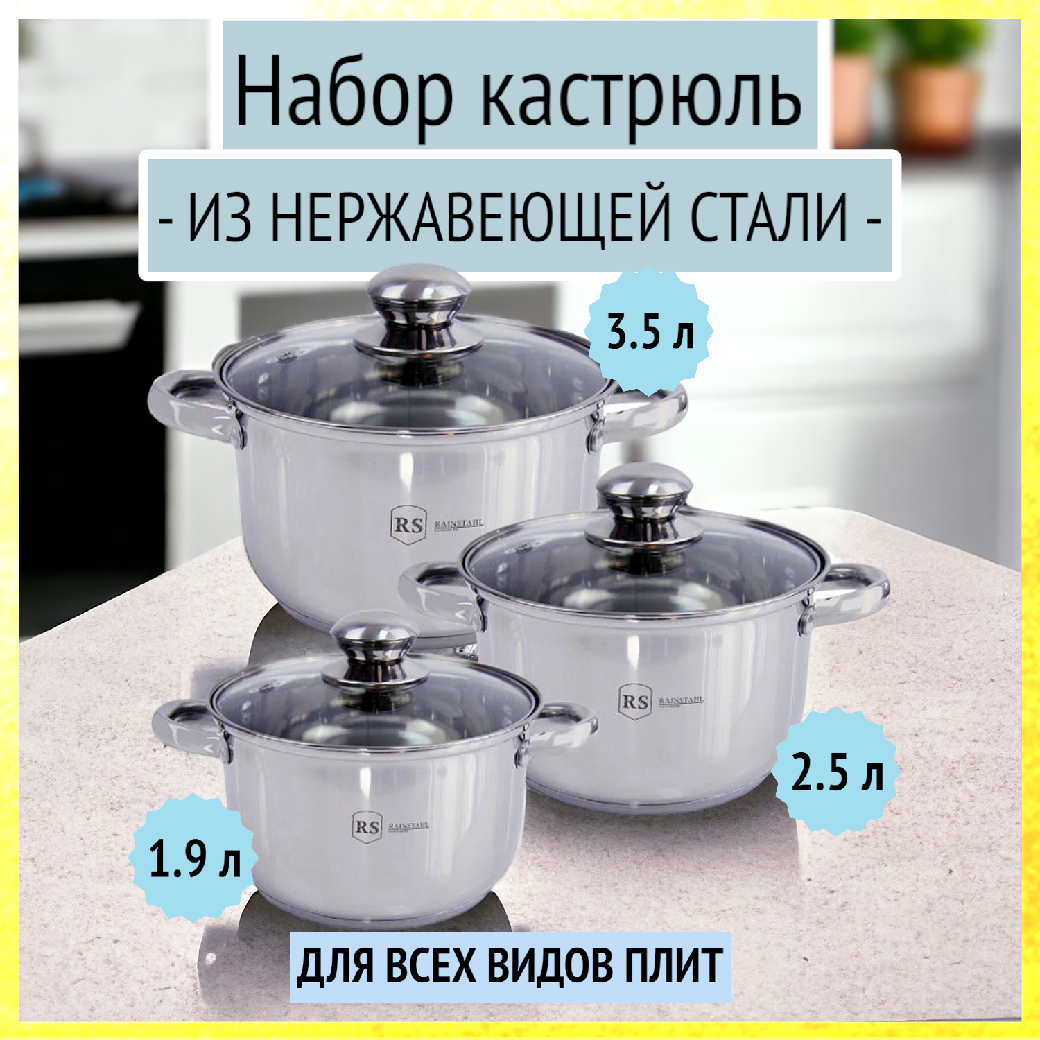 Rainstahl Посуда RS\CW 1645-06 /6пр. /1,9л, 2,5л, 3,5л /капсульное дно(х4) 1645-06RS\CW