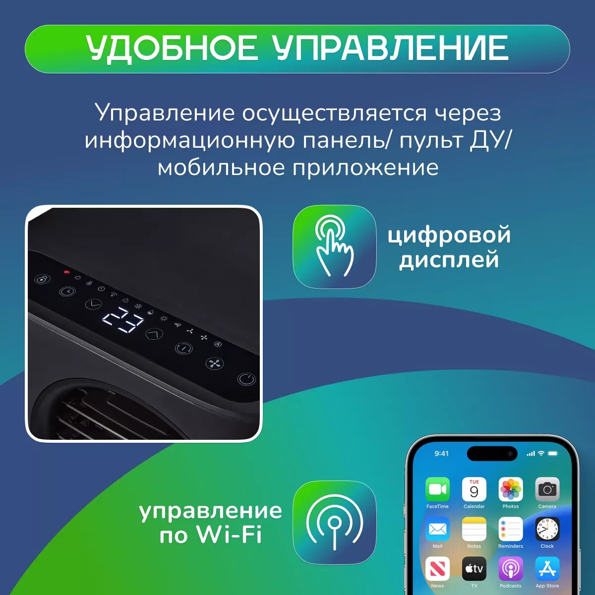 | Особенности | дисплей / пульт ДУ / регулировка направления воздушного потока / таймер включения/выключения |