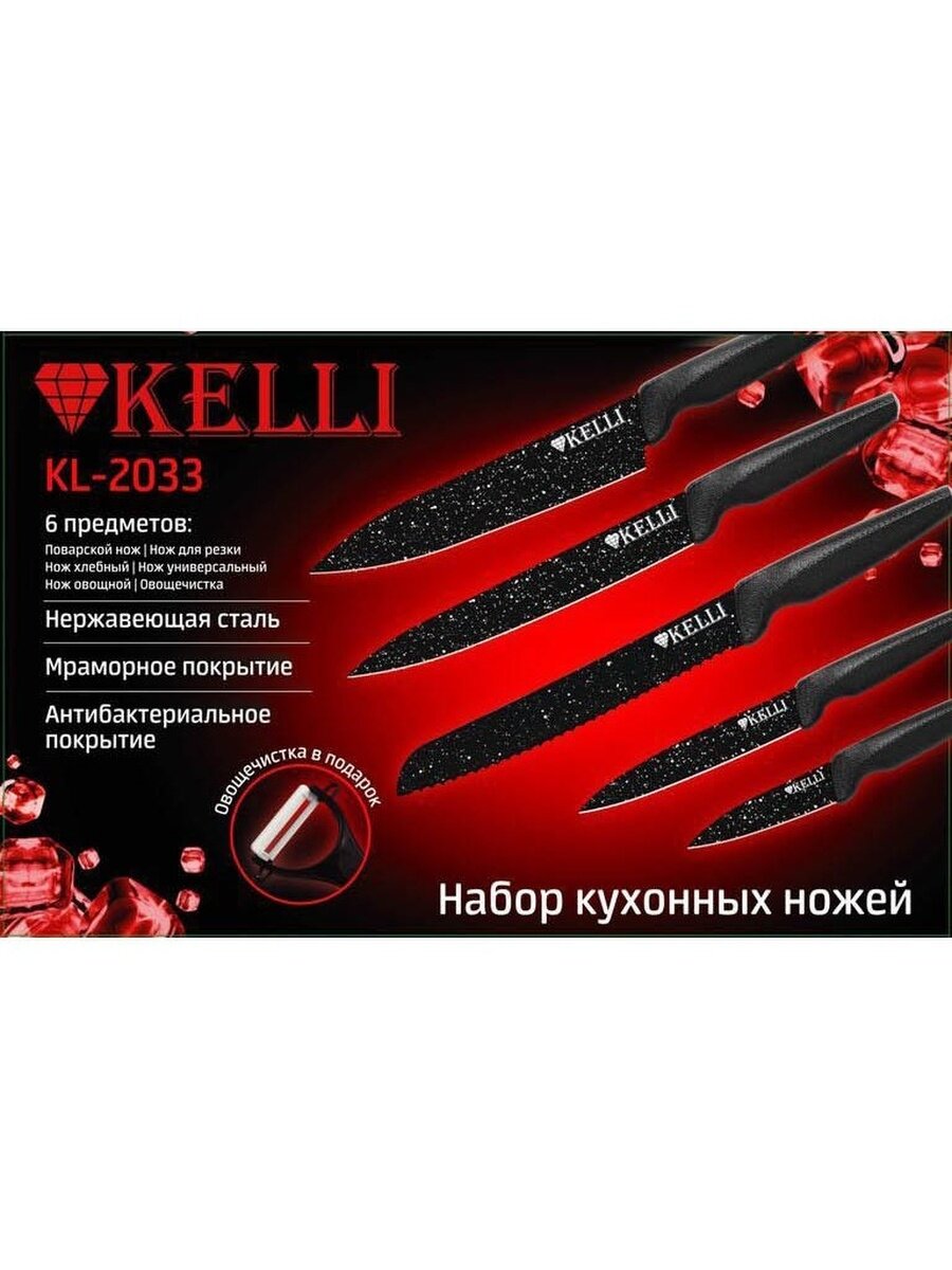 Ниже Вы можете прочитать отзывы на Набор Kelli Kl-2033, 5 ножей и овощечистка в комплекте, подарочная упаковка, ознакомится с подробными характеристиками, посмотреть интересные обзоры и фотографии на Набор Kelli Kl-2033, 5 ножей и овощечистка в комплекте, подарочная упаковка.