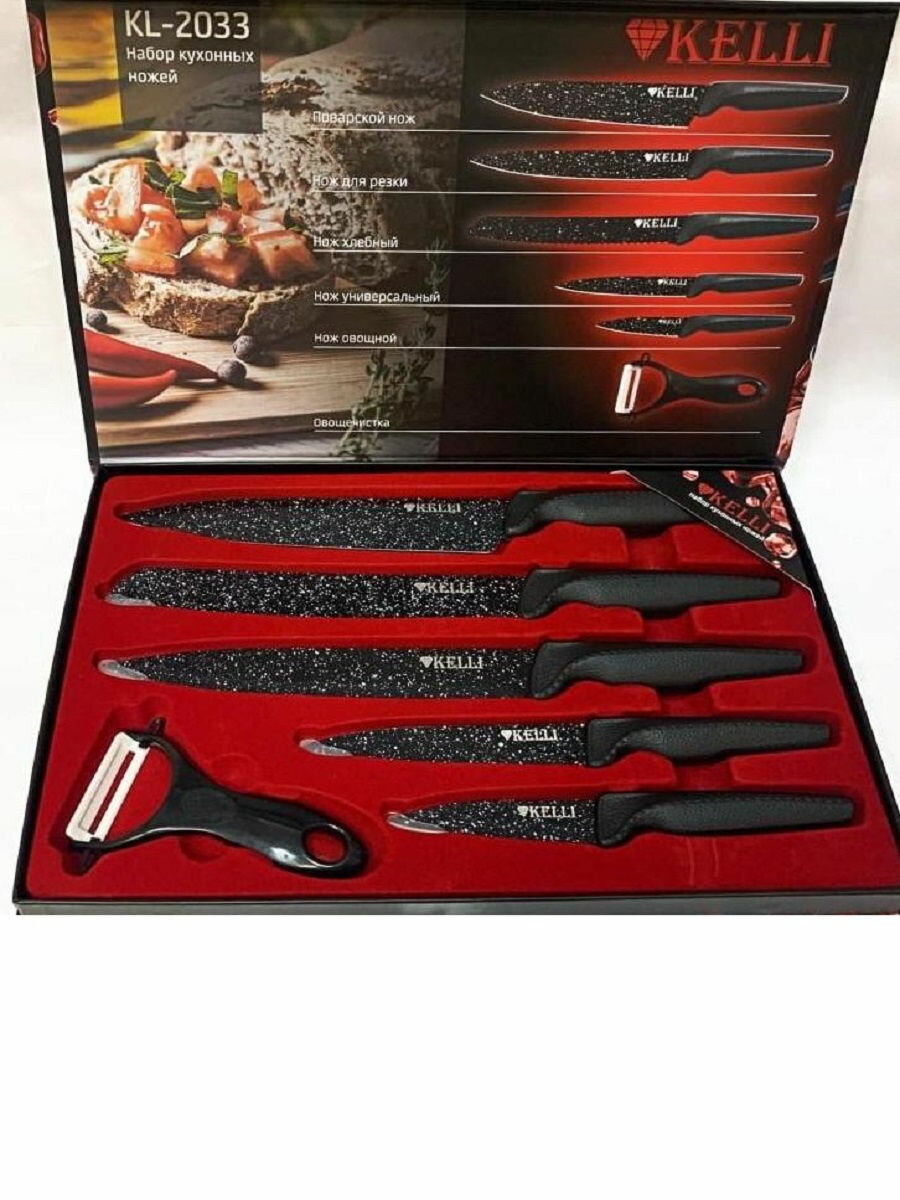 Купить Набор Kelli Kl-2033, 5 ножей и овощечистка в комплекте, подарочная упаковка
