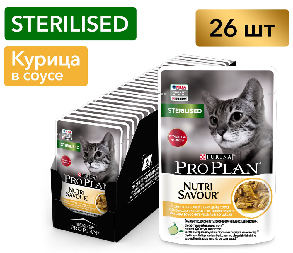 Влажный корм для стерилизованных кошек Pro Plan Nutrisavour , с индейкой 26 шт. х 85 г (кусочки в желе)