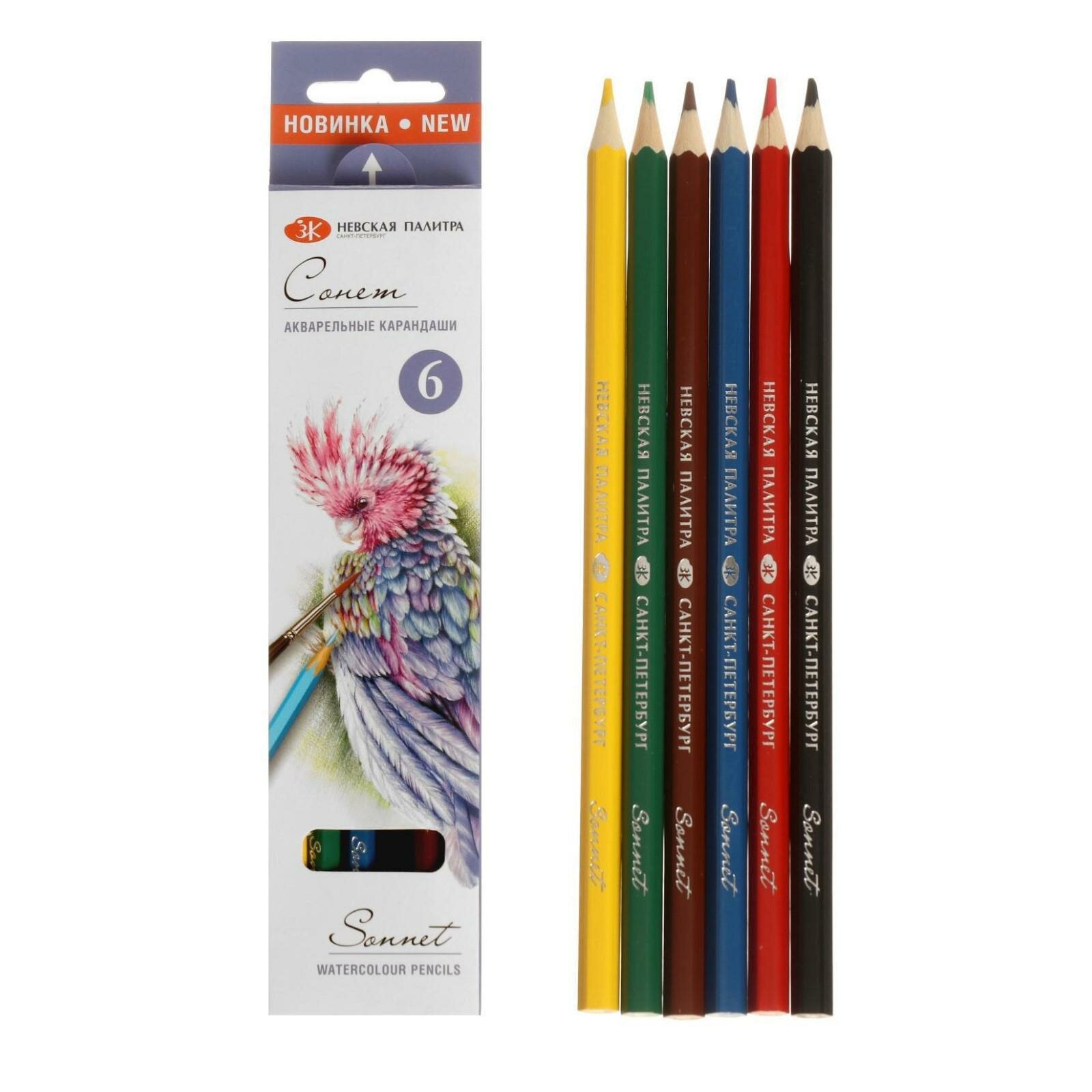 Карандаши ЗХК Невская палитра "Сонет", 6 цветов, акварельные, шестигранные интересное: