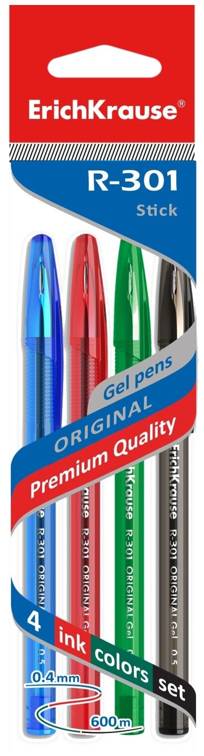Набор гелевых ручек Erich Krause R-301 Original Stick (0.4мм, 4 цвета) 4шт. (45157) интересное: