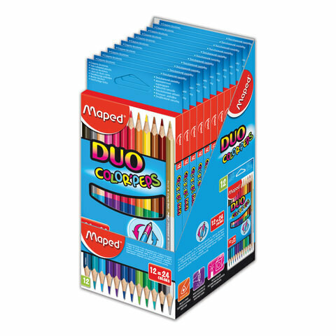 Купить Карандаши цветные Maped "Color Peps" 24 цвета, 12шт., двусторонние, трехгранные, заточен., картон. уп., европодвес
