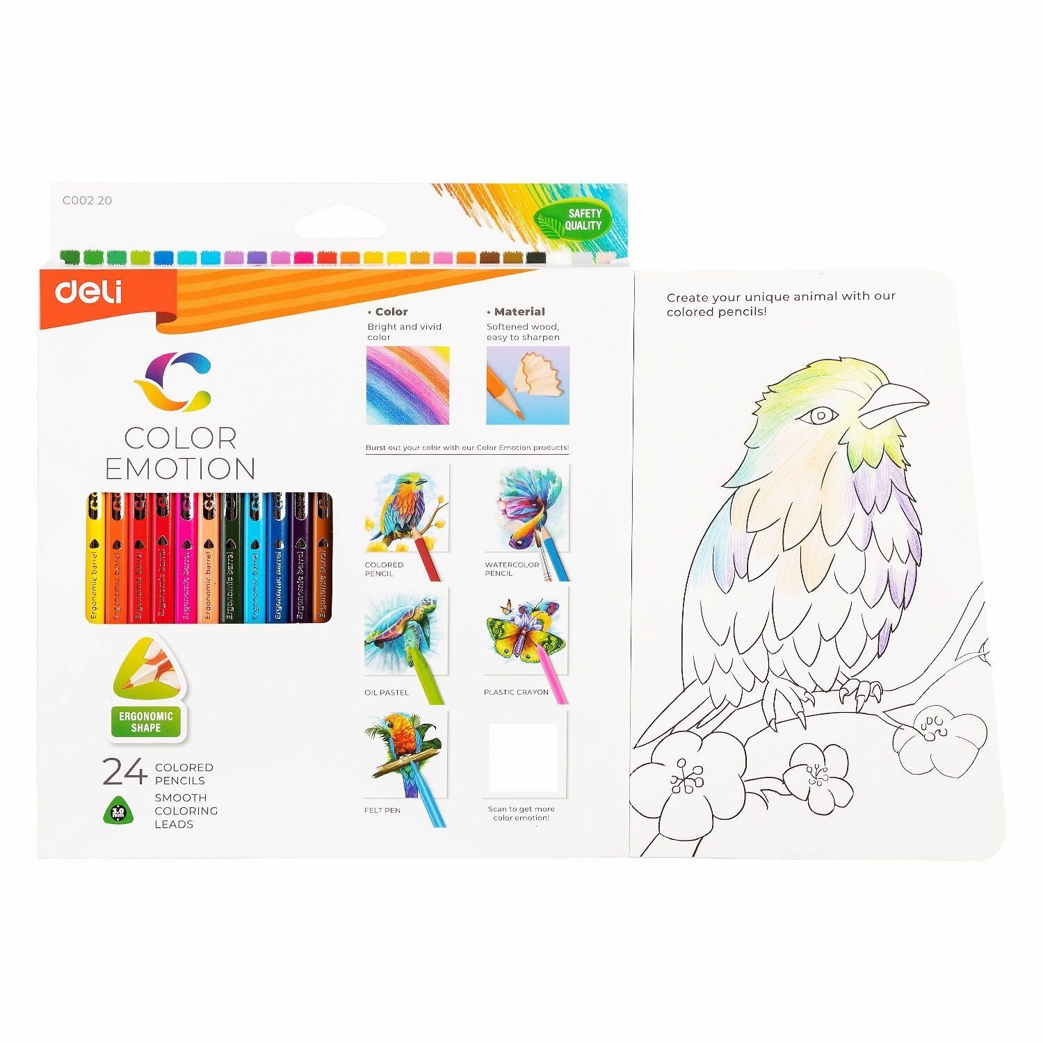 Карандаш Deli Карандаши цв. Color Emotion трехгран. липа 24цв. коробка/европод. (24шт)