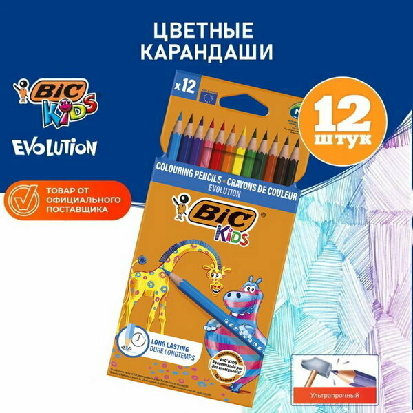 Купить Цветные карандаши BIC Kids Evolution, 12 цветов