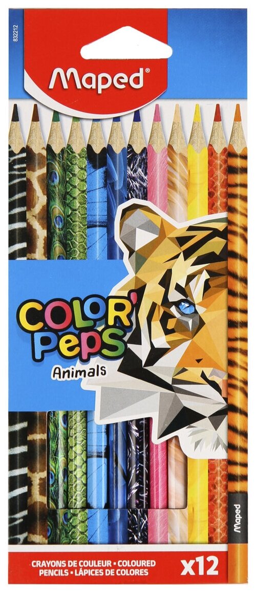 Карандаши цветные 12 цветов Maped Color'Peps Animals (L=175мм, D=7мм, d=3мм, 3гр) картонная упаковка (832212)