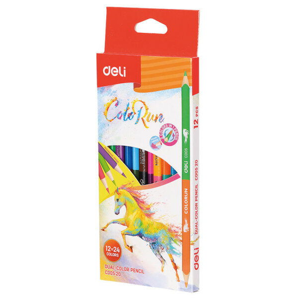 Карандаши цв. Deli EC00520 ColoRun двухцвет. липа 24цв. коробка/европод. (12шт)