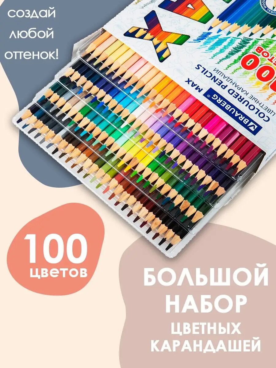 Набор карандашей Brauberg MAX, 100 цветов, шестигранные, деревянные