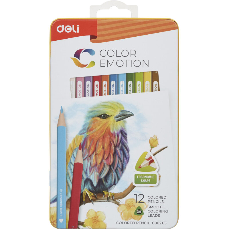 Карандаши Deli Color Emotion EC00205 EC00205, липа, 12 цв., коробка металлическая