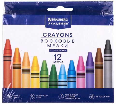 Восковые карандаши утолщенные BRAUBERG "академия", набор 12 цветов, 227287 (цена за 1 ед.товара)