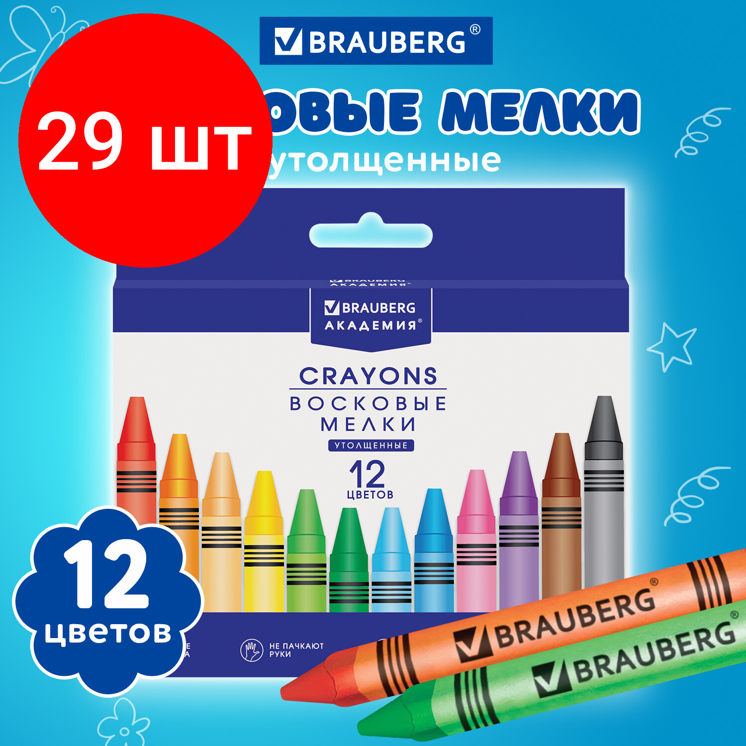 Купить Комплект 29 шт, Восковые карандаши утолщенные BRAUBERG "академия", набор 12 цветов, 227287
