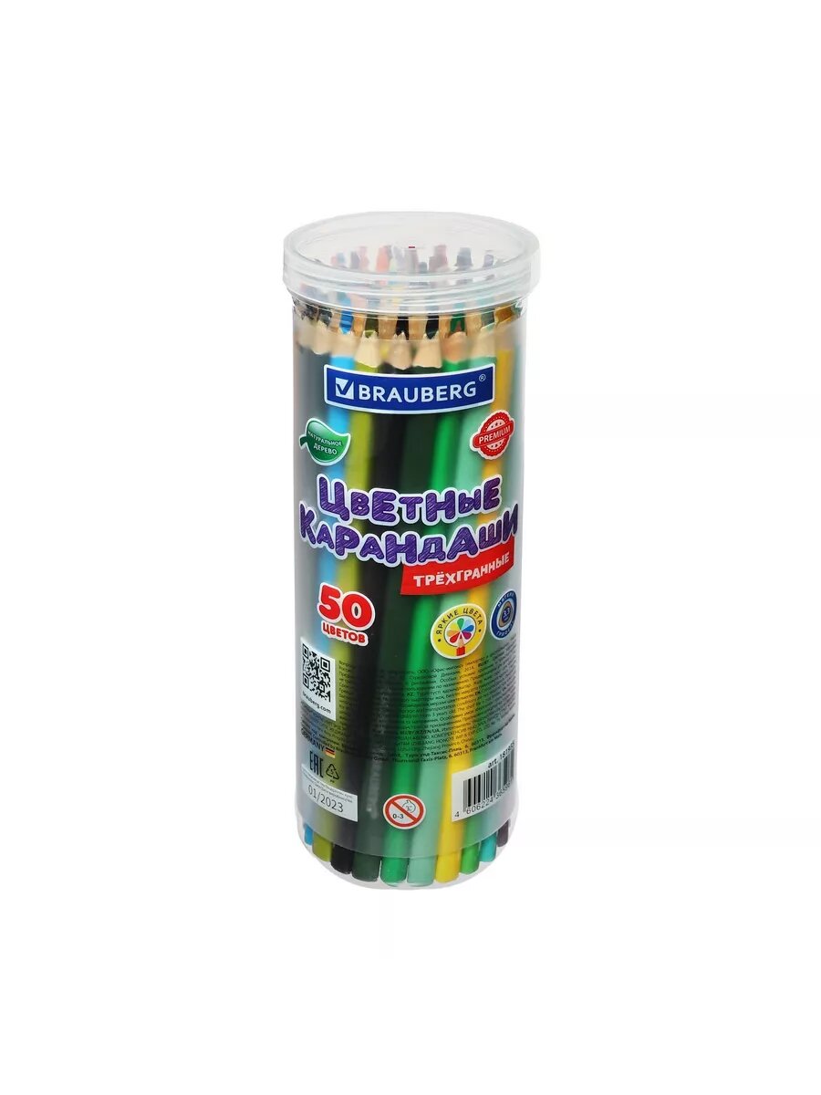 Карандаши цветные для рисования Brauberg, яркие, трехгранные, супермягкие, натуральное дерево, 50 цветов