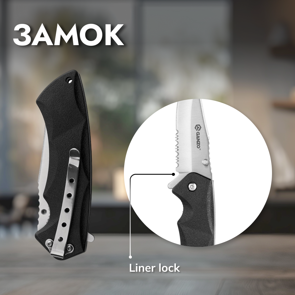 Нож складной туристический с серрейтором Ganzo G617 интересное:
