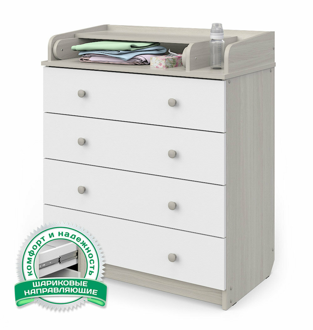 Комод Атон Сириус-2 804 ЛДСП пеленальный (4 ящика) Шимо светлый/Белый