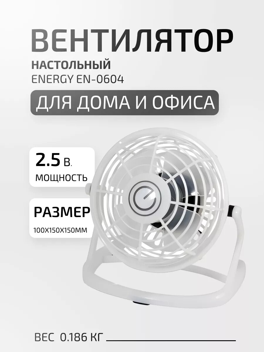 Купить вентилятор настольный ENERGY EN-0604 USB 2,5Вт 1 режим белый