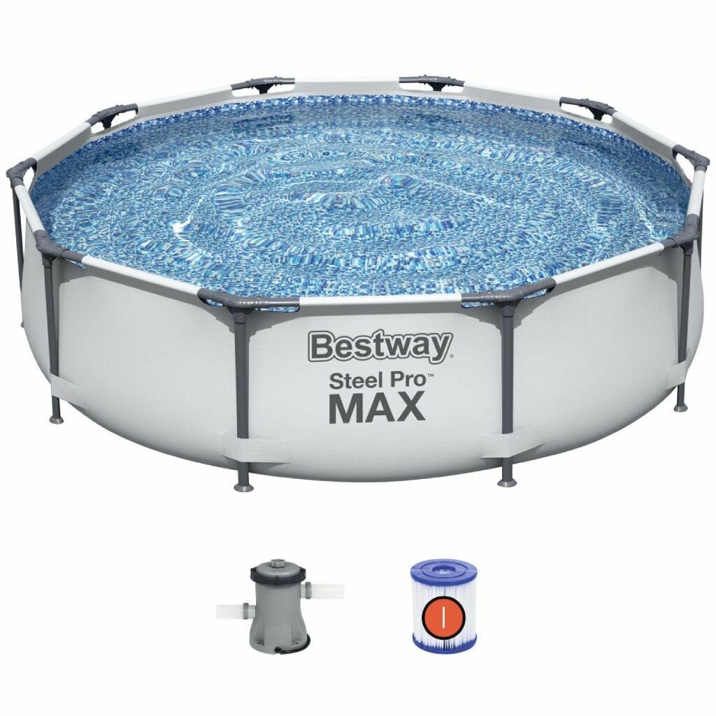 Бассейн каркасный круглый с фильтр-насосом Bestway 56420 Steel Pro Max 366х122 см 10250л / Бассейн бествей семейный для дачи с жестким бортом