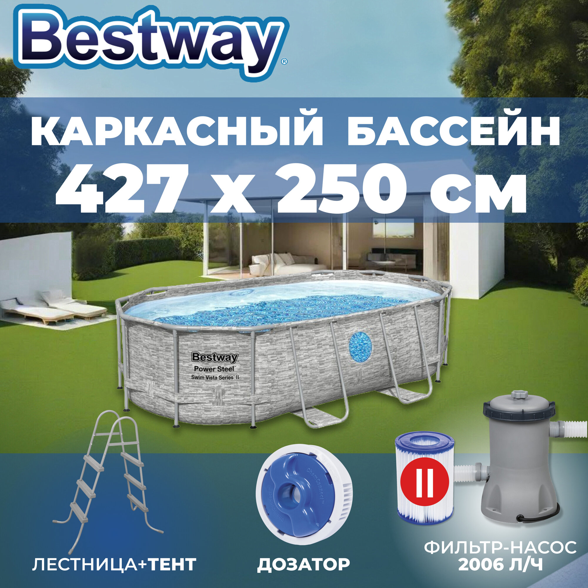 Бассейн каркасный Bestway Power Steel Swim Vista, 427×250×100, фильтр-насос, лестница, тент, 56714